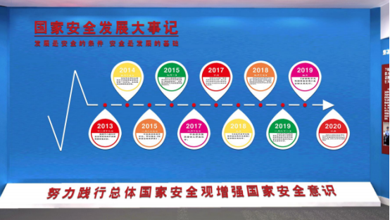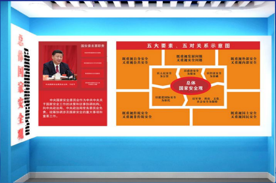 展廳一:展示了“總體國家安全觀”的誕生、內(nèi)容、體系、制度、法律等內(nèi)容,讓游客從整體上把握“總體國家安全觀”。