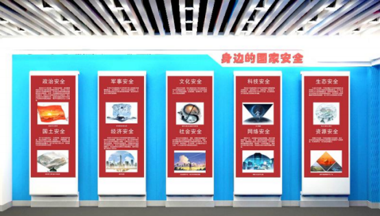 展廳二:從網(wǎng)絡(luò)、社會、金融、生態(tài)、政治五個方面深入剖析國家安全“總體國家安全觀”,將國家安全與每位參觀者緊密聯(lián)系。
