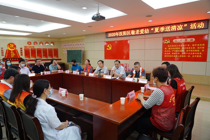 8月9日,漢陽區(qū)敬老愛幼“夏季送清涼”活動在漢陽區(qū)琴斷口街七里一村社區(qū)舉行,區(qū)民政局黨委書記、局長、區(qū)慈善會常務(wù)副會長劉漢華,琴斷口街道辦事處黨工委書記趙亮出席會議。武漢市漢陽醫(yī)院紀委書記易喜祥,黃鶴樓酒業(yè)副總經(jīng)理兼總會計師麻玉俠作為愛心企業(yè)代表參加會議。