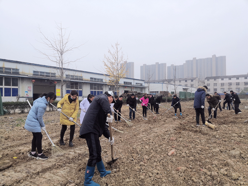 義務勞動中,黃鶴樓酒業黨委委員、隨州黨支部書記閔波平和大家一起分工合作,翻地、撒苗、培土,有條不紊。冬季天氣寒冷,大家卻汗濕衣衫,熱情高漲,以勞動為榮,樂在其中。