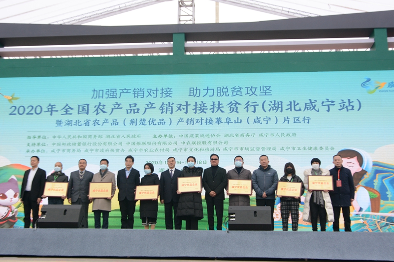 12月16日,由商務(wù)部和湖北省政府指導(dǎo),中國(guó)蔬菜流通協(xié)會(huì)、湖北省商務(wù)廳和咸寧市人民政府共同主辦的“2020年全國(guó)農(nóng)產(chǎn)品產(chǎn)銷(xiāo)對(duì)接扶貧行(湖北咸寧站)暨湖北省農(nóng)產(chǎn)品(荊楚優(yōu)品)產(chǎn)銷(xiāo)對(duì)接幕阜山(咸寧)片區(qū)行”活動(dòng)在咸寧市人民廣場(chǎng)啟幕。商務(wù)部流通產(chǎn)業(yè)促進(jìn)中心副主任安寶軍,湖北省商務(wù)廳黨組成員、副廳長(zhǎng)胡中海,咸寧市政府副市長(zhǎng)熊享濤,咸寧市政府副秘書(shū)長(zhǎng)鄢文軍,咸寧市商務(wù)局黨組書(shū)記、局長(zhǎng)傅火金等出席活動(dòng)。