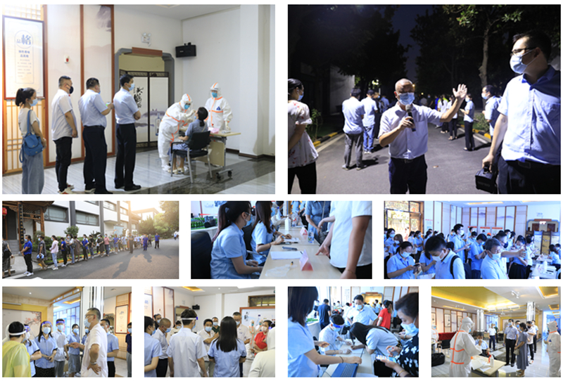 檢測開始后,各員工嚴格遵守秩序,聽從指揮,積極配合。防疫人員認真負責,規范操作。由于檢測量大,采樣工作一直持續到晚上十時,但在防疫部門、公司領導、各級員工的緊密配合與堅持下,順利對黃鶴樓酒業500余名在漢員工完成檢測。