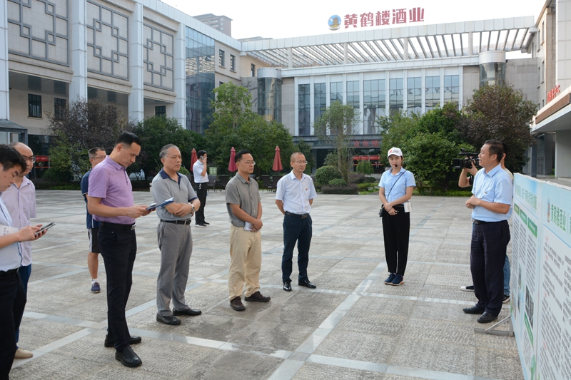 李烽一行先后調研了景區的商貿中心、黃鶴樓酒文化館、美酒銀行等地,了解了黃鶴樓酒業的產品和歷史文化,并實地查看了廠區內室外罐區、釀酒車間等場所節水設施的工作情況。