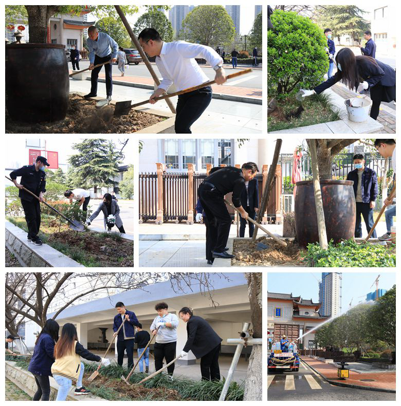 頭頂驕陽,沐浴春風,大家揮灑熱情與汗水,齊心協(xié)力、分工合作,為園區(qū)道路兩旁樹木松土、施肥、澆水,幫助樹木茁壯成長,共筑綠色家園。