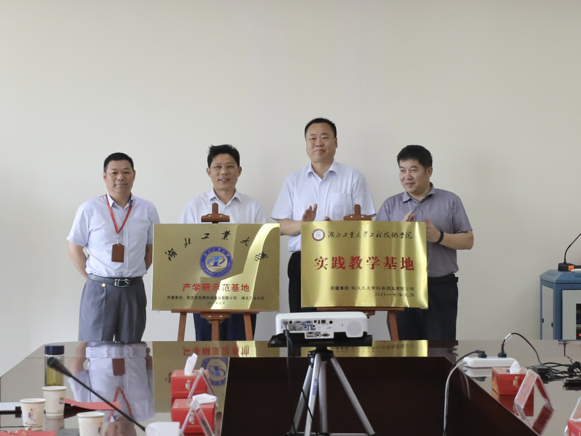 6月2日,湖北工業大學 “產學研示范基地”及“實踐教學基地”授牌儀式在黃鶴樓酒業咸寧分廠舉行,湖北工業大學生物工程學院院長陳雄,工程技術學院副院長胡立新,黃鶴樓酒業董事長許鵬參加授牌儀式,并進行揭牌。