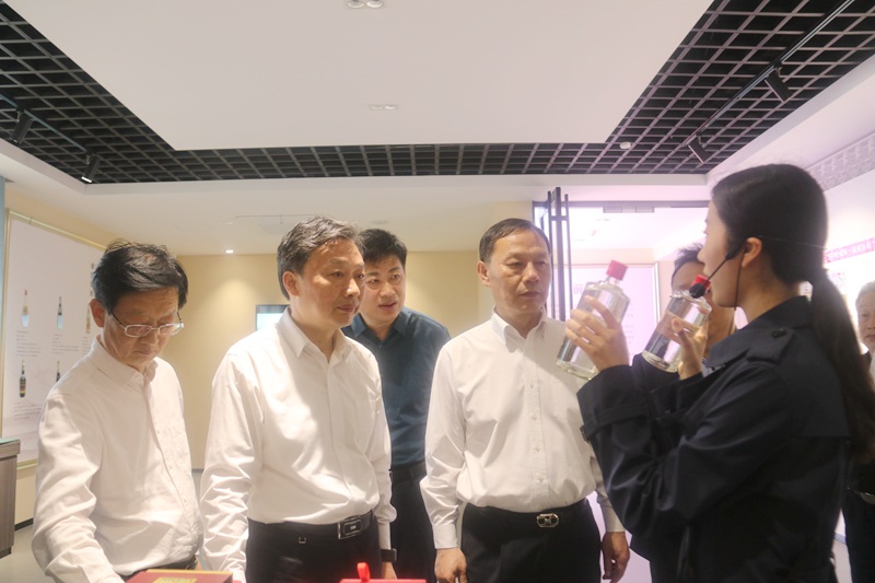 馬國強一行先后調研了萬噸陶壇林、釀造車間、黨建館、老酒館及酒文化館。閔波平匯報了公司生產經營狀況、廠區和品牌建設、智能化升級改造等方面發展情況,詳細介紹了公司企業文化內涵、“131”基酒老熟技藝和市場產品體系。
